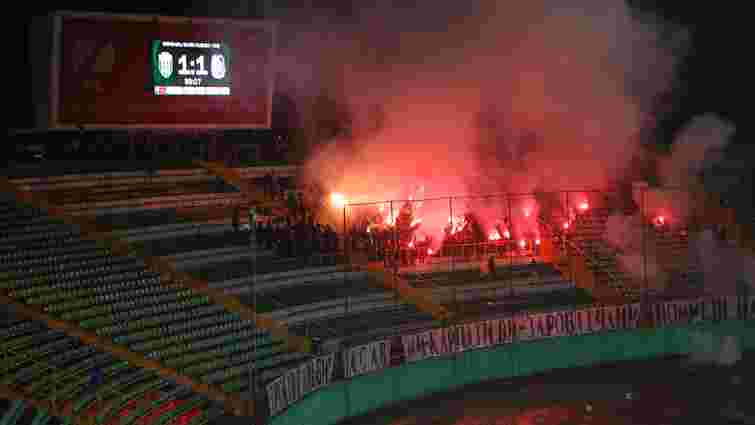 Єдине, що було чутно від фанатів – вибухи від чималої кількості піротехніки. Арбітру матчу навіть довелося на декілька секунд зупинити матч після того, як вибух пролунав неподалік воротаря «Карпат» Романа Мисака.