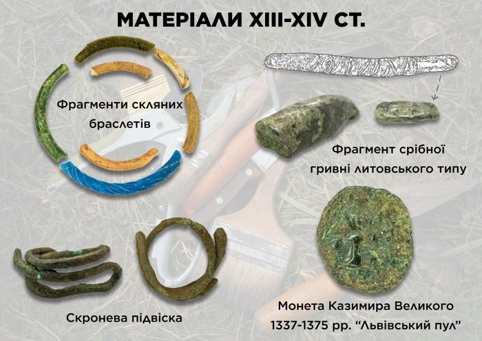 Знахідки XIII-XIV ст. (автор ілюстрації: Ірина Сус, Інститут археології)