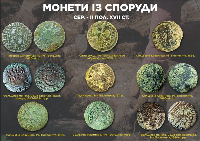 Монети із камʼяного будинку XVII cт. (автор ілюстрації Ірина Сус, Інститут археології)
