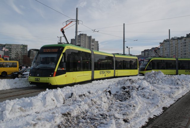Один з нових «Електронів» розірвав символічну зелену стрічку з бантом на знак того, що маршрут на Сихів відкрито.