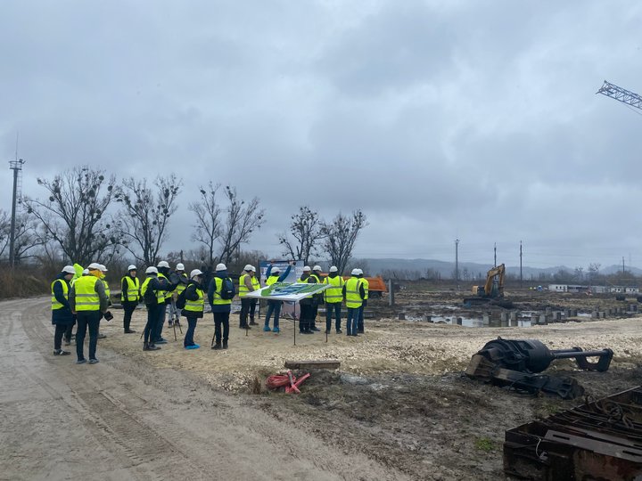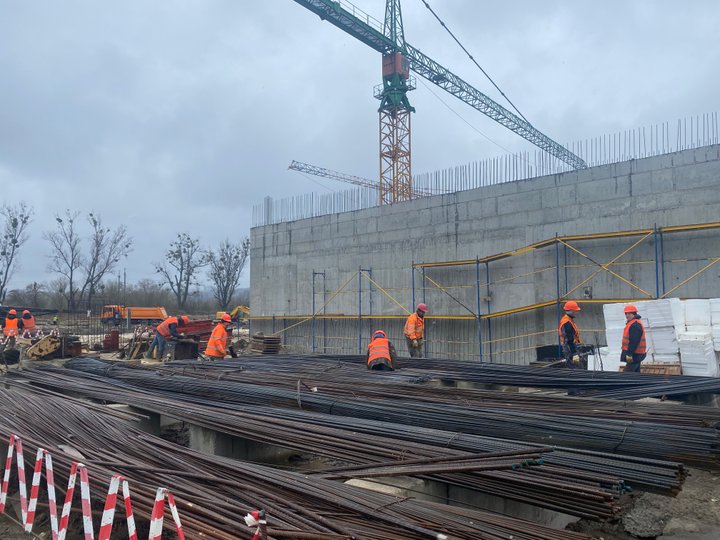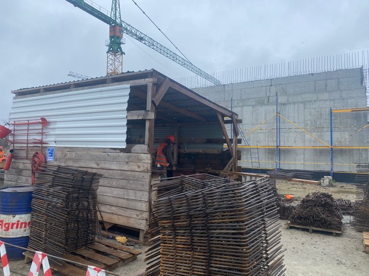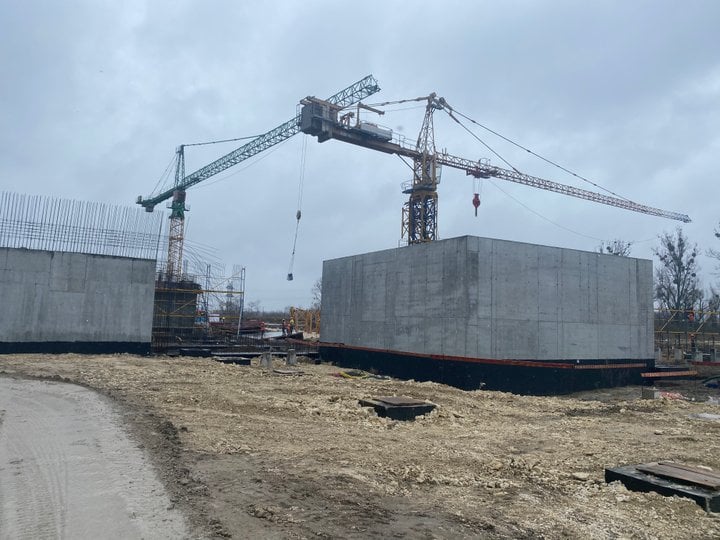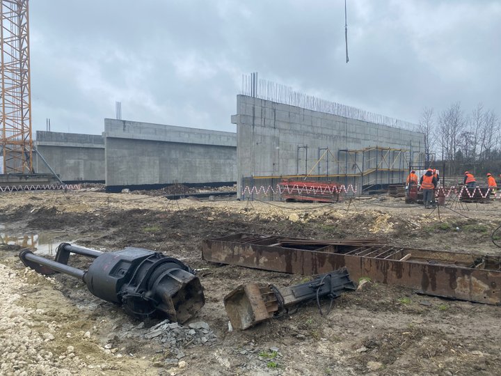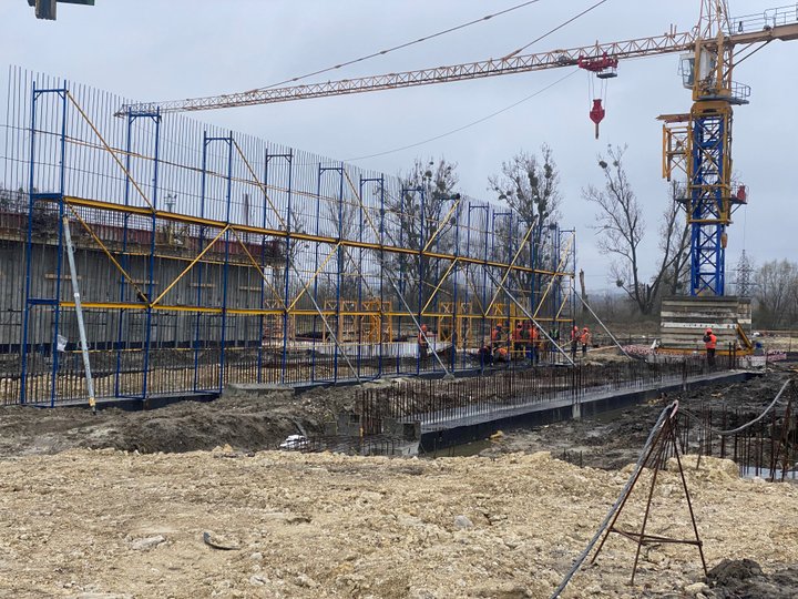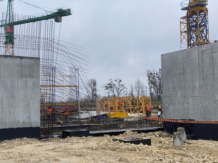 «Зараз ми забиваємо палі, робимо фундамент, металеві конструкції даху і за три-чотири місяці будемо закривати панелями зовнішні фасади. Контракт ми підписали наприкінці 2021 року, а земляні роботи розпочали у 2022 році», – розповів керівник проекту, представник генерального підрядника Control Process S.A. Кшиштоф Хабіер.