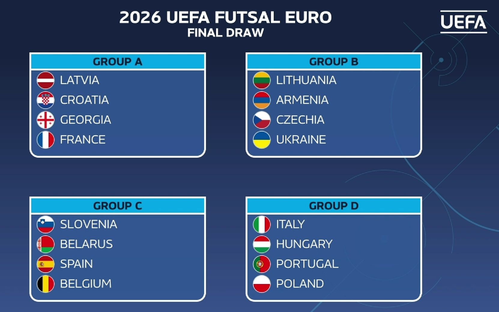 До слова, чемпіонат Європи з футзалу відбудеться з 21 січня по 7 лютого в Ризі (Латвія), Каунасі (Литва) та Любляні (Словенія).