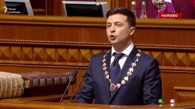 У понеділок, 20 травня, Володимир Зеленський, виголошуючи свою першу промову на посаді президента України заявив, що його першим та найважливішим завданням є досягнення миру на Донбасі.