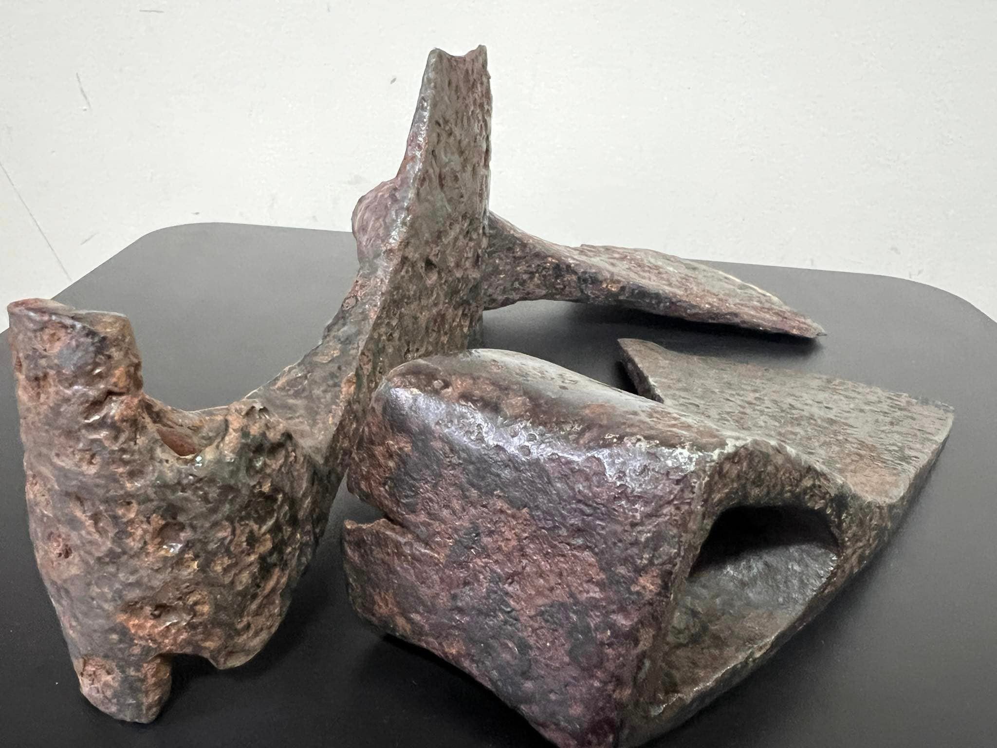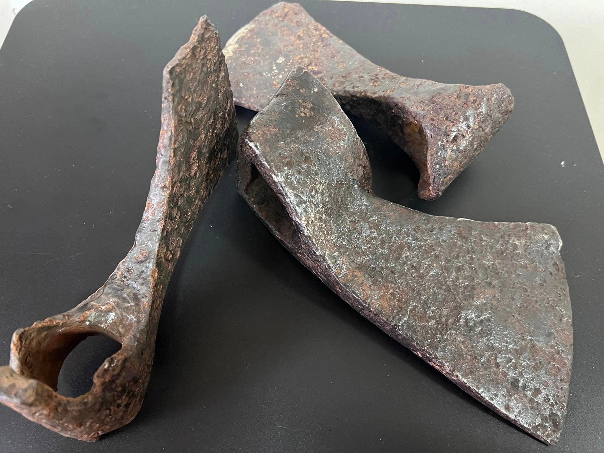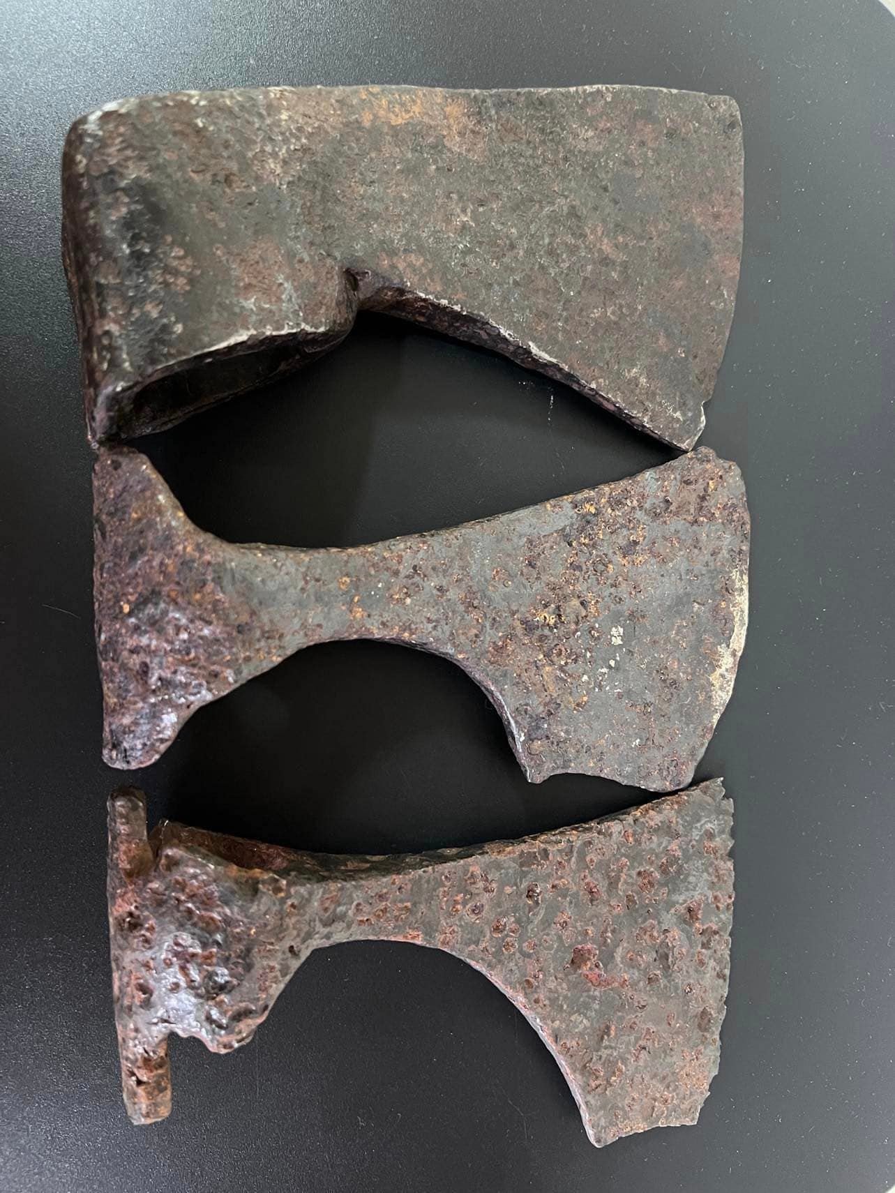 На думку експертів, дві менших сокири – теслярські. Фахівці вважають, що вони належать до доби Київської Русі – X-XIII ст. Судячи з конструкції сокир (подовжений вирізний обух та відтягнуте донизу лезо), ймовірно, їх могли використовувати також як бойову зброю.