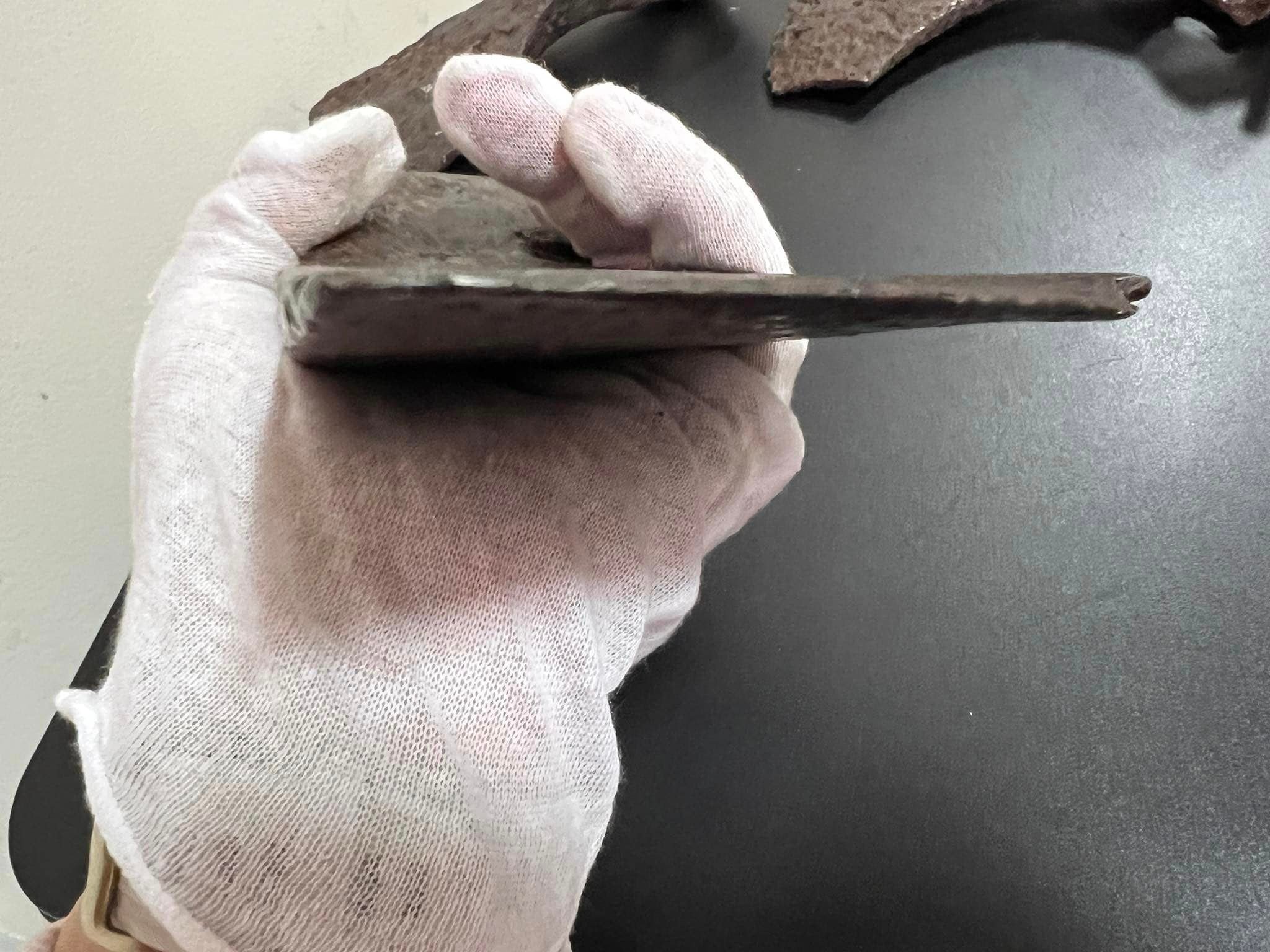 «Найбільшу з виявлених сокир, довжиною 20,5 см, визначено як сокиру доби козацтва, під умовною назвою “горбач”. З одного боку полотна на ній проставлене майстрове клеймо. Вік артефакту – XVI-початок XVII ст. Цю важку робочу сокиру пов’язують з лісорубними або теслярськими роботами», – йдеться у повідомленні.