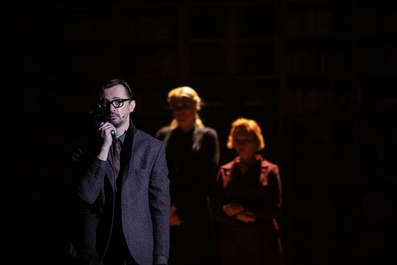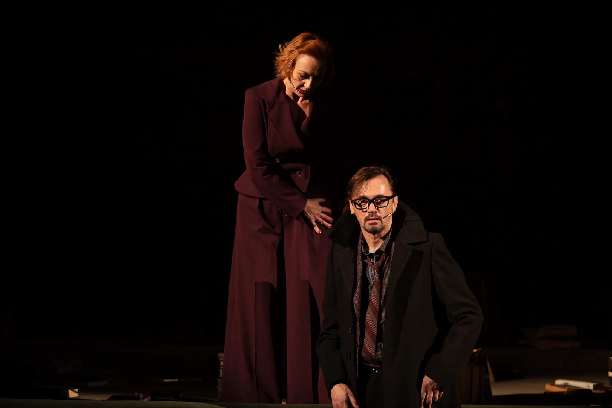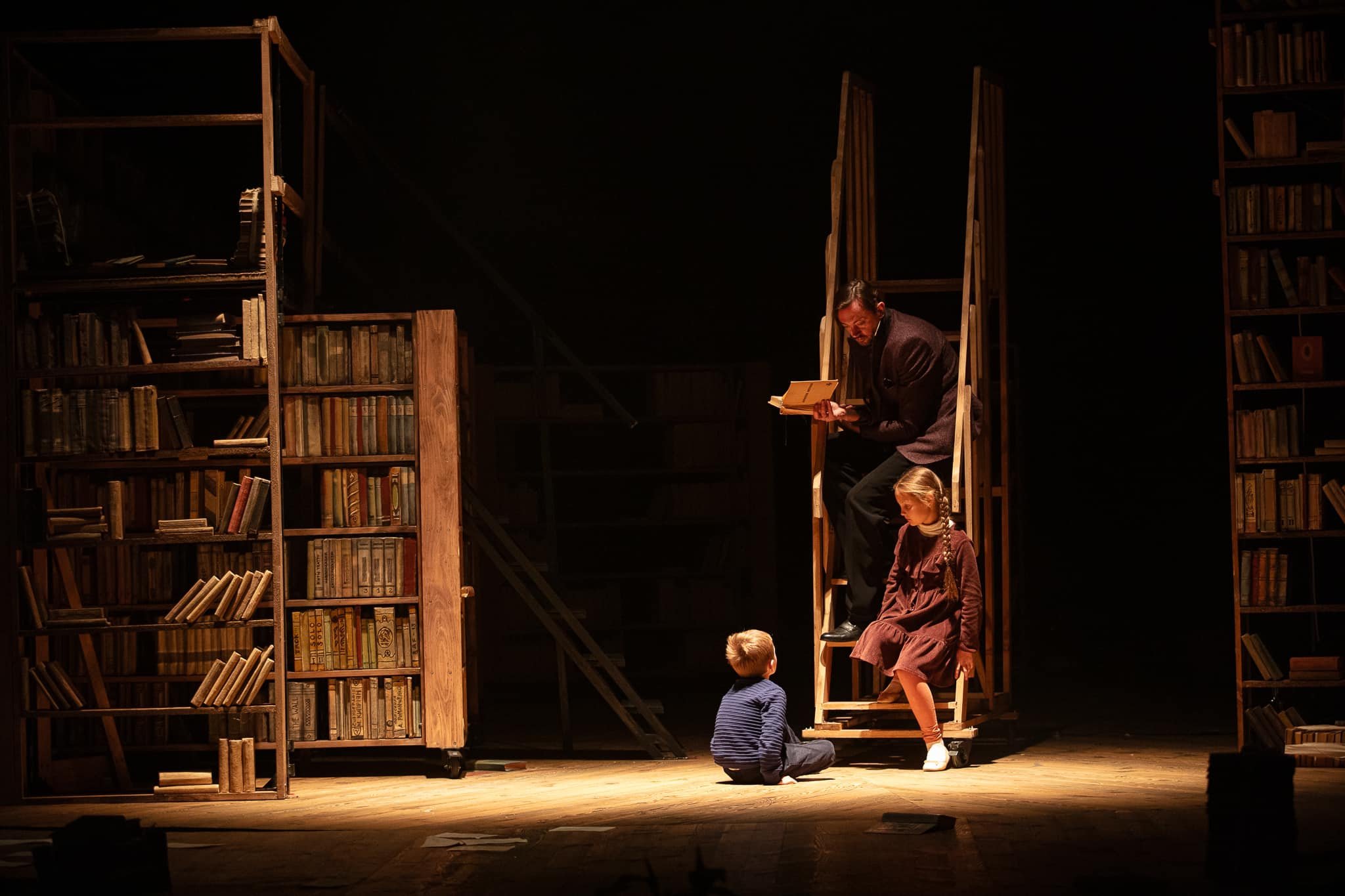 Але про все по черзі. Сценографія, вишукана та змістовно насичена, прокручує персонажів разом з усім їх досвідом знову і знову, як на каруселі. Вони обертаються, переміщаються по колу, проте насправді весь час опиняються у точці відліку. А ще вона майже повністю складається з книжок, перегукуючись з іншою новою виставою театру, «Паливо». І там, і там книжки, які ми звикли вважати символом духовного життя стають лише його формальним атрибутом, нічого не змінюючи та ні на що не впливаючи. Уся їх мудрість не має змоги протистояти варварській навалі.