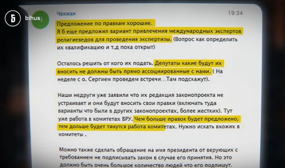 Окрім Дмитрука, у листуваннях Сергія Чертиліна фігурував юрист Павла Лебедя Микита Чекман. Судячи з розмови, Чекману передають правки щодо законопроекту про заборону УПЦ МП, а вів вимагає підготувати більше правок для його затягування. У листуванні юрист заявив, що депутати мають внести до 500 правок, аби затягнути процес розгляду проекту закону, а також додав, що нардепи, які будуть їх вносити, не мають бути пов’язані з УПЦ МП.