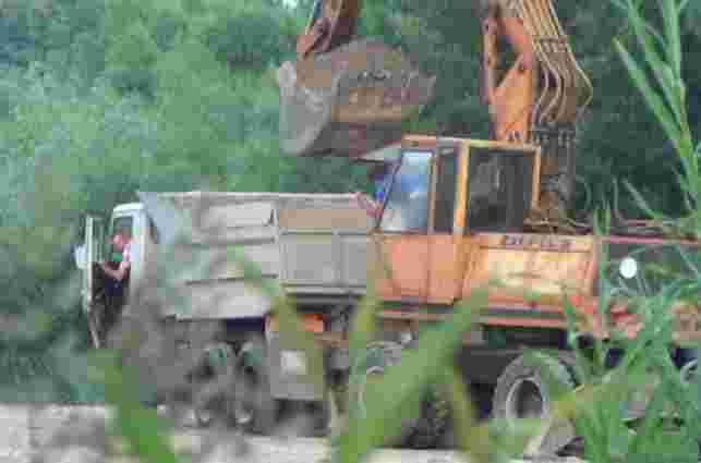 Зловмисники видобували гравій за допомогою екскаватора і вантажівок (фото - Національна поліція)