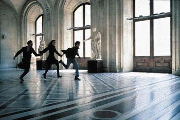 Події фільму (на головному фото) розгортаються у Парижі 1968 року. Американський студент за обміном знайомиться з двома молодими парижанами, братом та сестрою, та оселяється в великій паризькій квартирі. Там відбувається справжня сексуальна революція. А за вікнами вирує інша революція, Париж перекрито барикадами. Тож який вибір зроблять герої? У фільмі герої повторюють пробіжку Лувром з годарівської «Банди аутсайдерів», випередивши своїх попередників. От тільки на відміну від Ґодара Бернардо Бертолуччі довелось брати дозвіл на зйомку.